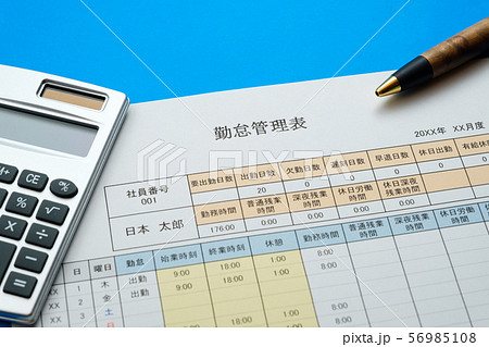 写真素材: 勤怠管理表 出勤 勤務 残業 社員 アルバイト
