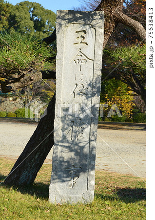 「王命に依って催さるる事」の石碑(名古屋城・二之丸庭園/愛知県名古屋市)