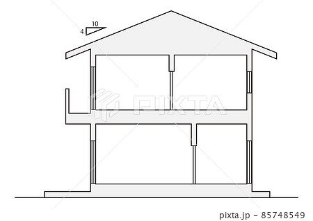 日本の戸建住宅の立面断面図 外皮のベクターイラスト