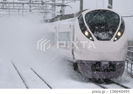 雪の中の常磐線を走るJR東日本E657系