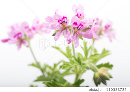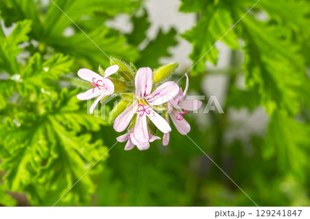 ピンク色のローズゼラニウムの花 背景ぼかし