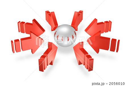 集中攻撃を表すアブストラクト。沢山の矢印。白バック。3Dレンダリング。