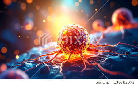 光免疫療法でがん細胞に光を照射している治療イメージの3Dイラスト 医療系素材