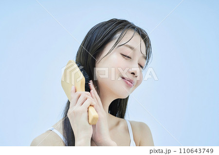 髪をブラッシングするロングヘアの女性