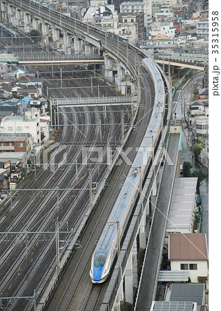 王子駅を通過中の東北新幹線と貨物列車 東京スカイツリー 北とぴあより
