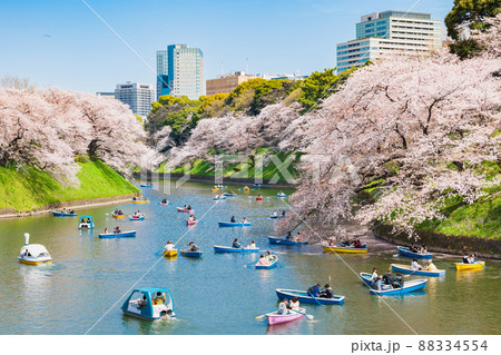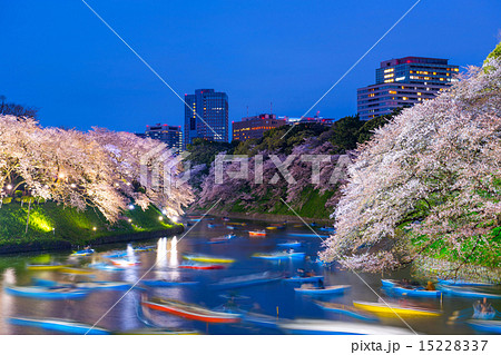 東京 桜満開の皇居・千鳥ヶ淵 縦位置