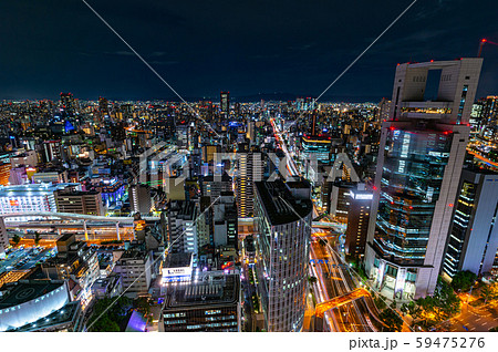 大阪の街の夜景、梅田スカイビルからの眺望