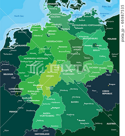 Set 2 of 2 Highly detailed maps vector silhouettes states of Germany with names and capital