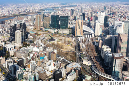 大阪・西梅田のブリーゼタワーのヘリポートから見た大阪市街地