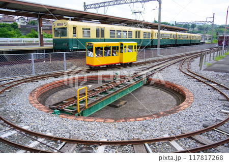 阿下喜駅に停車中の車両と転車台/三岐鉄道北勢線(三重県いなべ市)