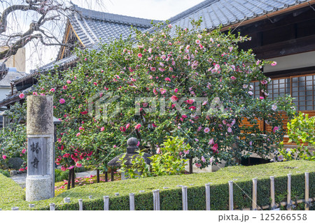 浄土宗の寺院で京都市北区の「椿寺」の愛称でも親しまれている椿満開の地蔵院影影