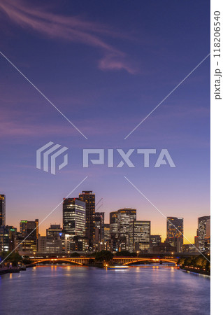 天満橋から見える中之島の美しい風景 マジックアワー