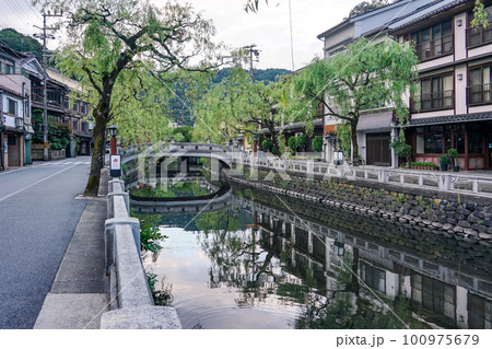 静かな朝の城崎温泉 川べりの柳通り(兵庫県豊岡市)