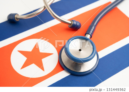 Stethoscope on North Korea flag background, Business and finance concept.