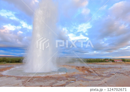 夏のアイスランド旅、美しい大自然の間欠泉ストロックル