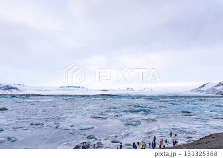 ヨークルスアゥルロゥン氷河湖 浮かぶ氷山と雪景色 アイスランドの絶景