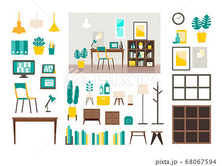 北欧家具 インテリアイラストセット【ホームオフィス】【ベクター】