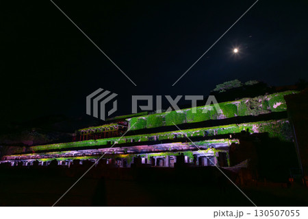 新潟県佐渡市のライトアップされた北沢浮遊選鉱場(ゴールデンウィーク)