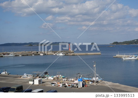 下関市 角島大橋・鳩島を望む「道の駅 北浦街道豊北」隣接の和久漁港