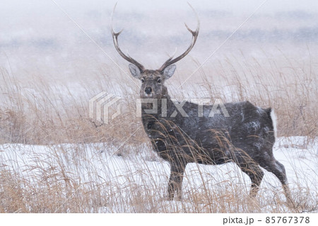 野付半島 吹雪の中のエゾシカ