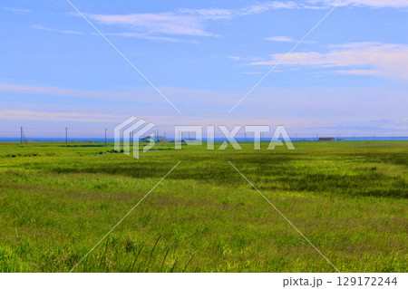 浜頓別クローバーの丘からクッチャロ湖を望む、6月の快晴の風景