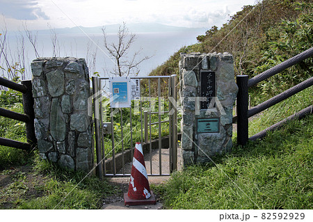 室蘭市にある地球岬灯台への入り口 土木學會 推奨土木遺産 パネル付き ワイド