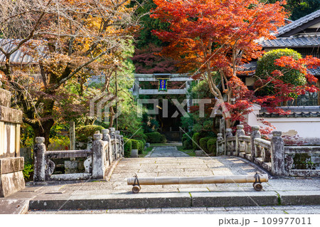 京都市左京区北白川仕伏町の北白川天神宮 鳥居と紅葉