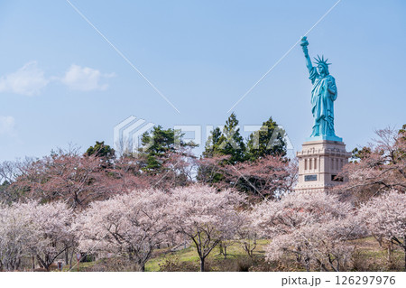 自由の女神像とソメイヨシノ(青森県おいらせ町)アップ