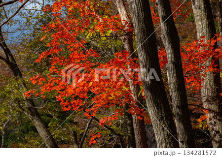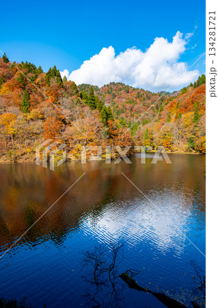 芦津渓谷の三滝ダム湖の紅葉 鳥取県八頭郡智頭町渓谷 鳥取県八頭郡智頭町