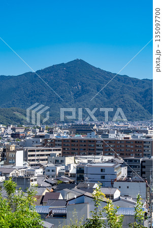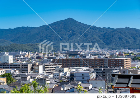 船岡山の建勲神社境内からの景色 京都の町並みと比叡山