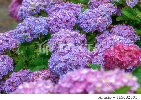 茨城県北茨城市華川町小豆畑 アジサイの名所北茨城あじさいの森の色とりどりの紫陽花の群生