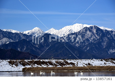 早春の安曇野 犀川と北アルプス