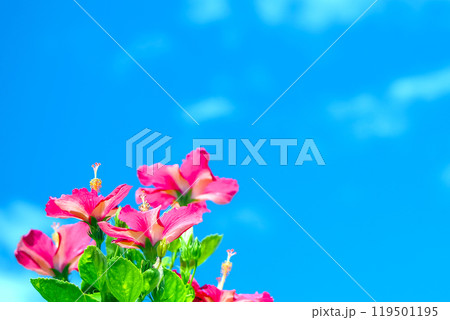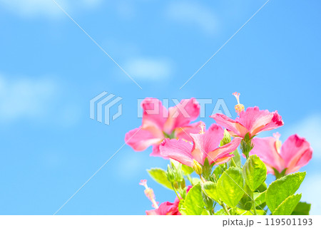 のどかな沖縄のイメージ 青い空と赤いハイビスカス