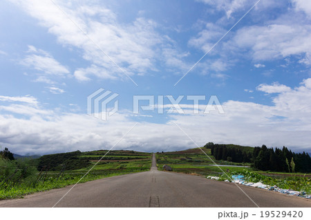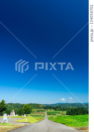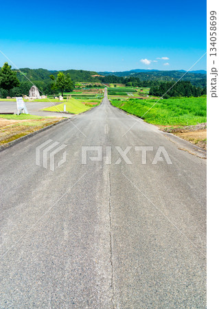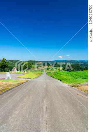 上原コスモス園 夏の道 新潟県魚沼市