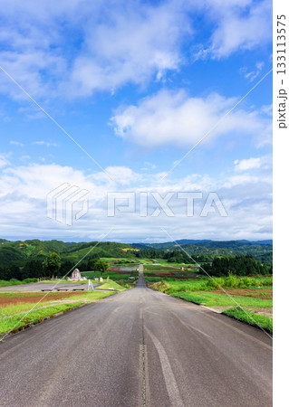 上原コスモス園 真っ直ぐな道 新潟県魚沼市吉平