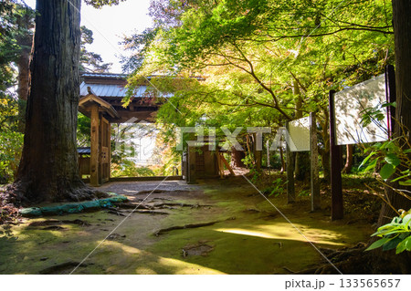 朝の飯高寺総門 色づき始めたモミジ 史跡飯高檀林跡 千葉県