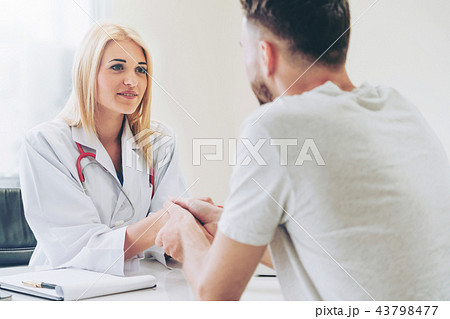 Woman Doctor and Male Patient in Hospital Office