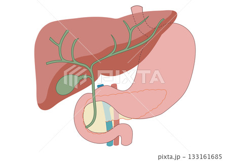 膵臓と胆のう、胃、肝臓、十二指腸のイラスト