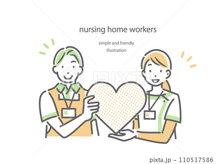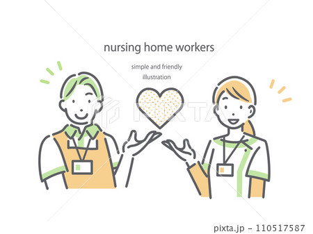 安心を提供する介護スタッフ シンプルでお洒落な線画イラスト