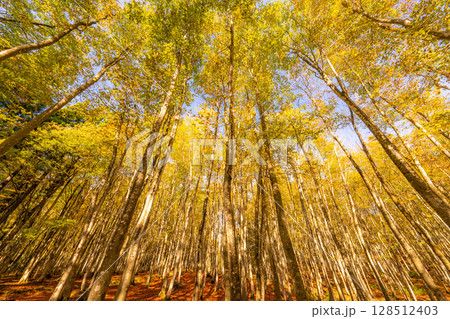 【森林素材】秋の美人林・紅葉したブナの森【新潟県】
