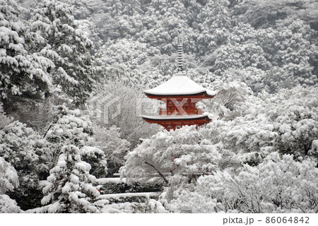 雪の清水寺 子安塔から三重塔を望む 京都市東山区