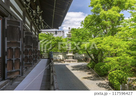 新緑の清水寺 本堂の桧皮葺の屋根 京都市東山区