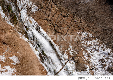 凍結した滝を上から見た風景