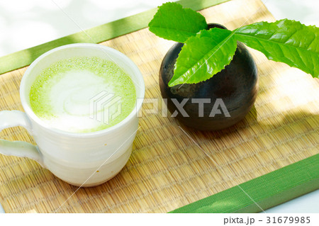 抹茶ラテと茶の新葉