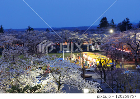 十和田市役所展望テラスから見る満開の夜桜(青森県十和田市)