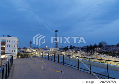 十和田市役所展望デッキから観る満開の夜桜(青森県十和田市)