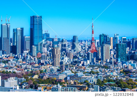 日本の東京都市景観 東京シティビュー。麻布台ヒルズや東京タワーなどを望む