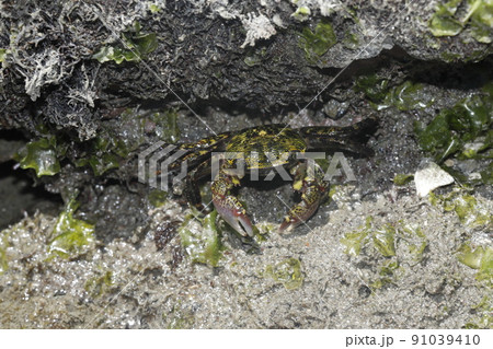 小笠原の磯を歩くオオイワガニ