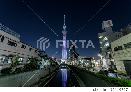 「東京都」十間橋から眺めるライトアップの東京スカイツリー 夜景