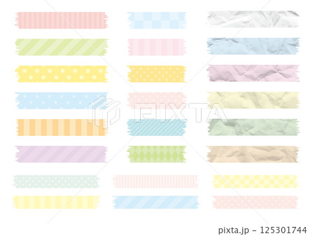 パステルカラーの模様やしわのある切られたテープセット